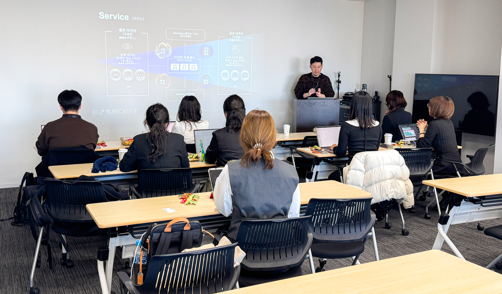 先日、ピースに在籍する韓国出身デザイナーの知人である、韓国の芸術大学に勤務されている教授1名と学生6名の皆さまが、